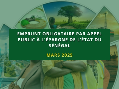 L’État du Sénégal, a lancé un Emprunt Obligataire par Appel Public à l’Épargne d’un montant de 405 milliards FCFA. Cet emprunt a pour objectif de financer les investissements prévus dans le budget 2025.